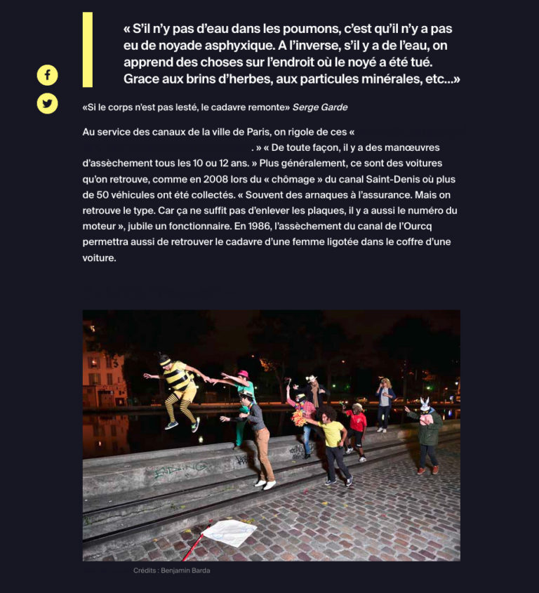 En 2013, Streetpress lance une drôle d’enquête sur les morts du canal Saint-Martin. En même temps, le site d’information édite un guide dépliable du canal Saint-Martin.