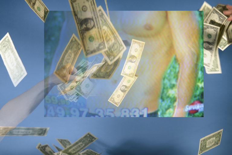 Cette série mélange les couleurs chatoyantes de la consommation de masse sur écran cathodique avec des lancers de dollars, en guise de célébration des pieds de nez facétieux de Banksy au marché de l’art.